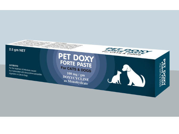 Pet Doxy Forte is an Treatment of infections caused by, or associated with, doxycycline susceptible organisms in dogs and cats, including skin infections such as pyoderma, folliculitis; respiratory infections such as tracheobronchitis, bronchitis and pneumonia; genitourinary infections such as cystitis and pyelonephritis; otitis externa and otitis media; gastrointestinal tract infections; osteomyelitis; puerperal infections.